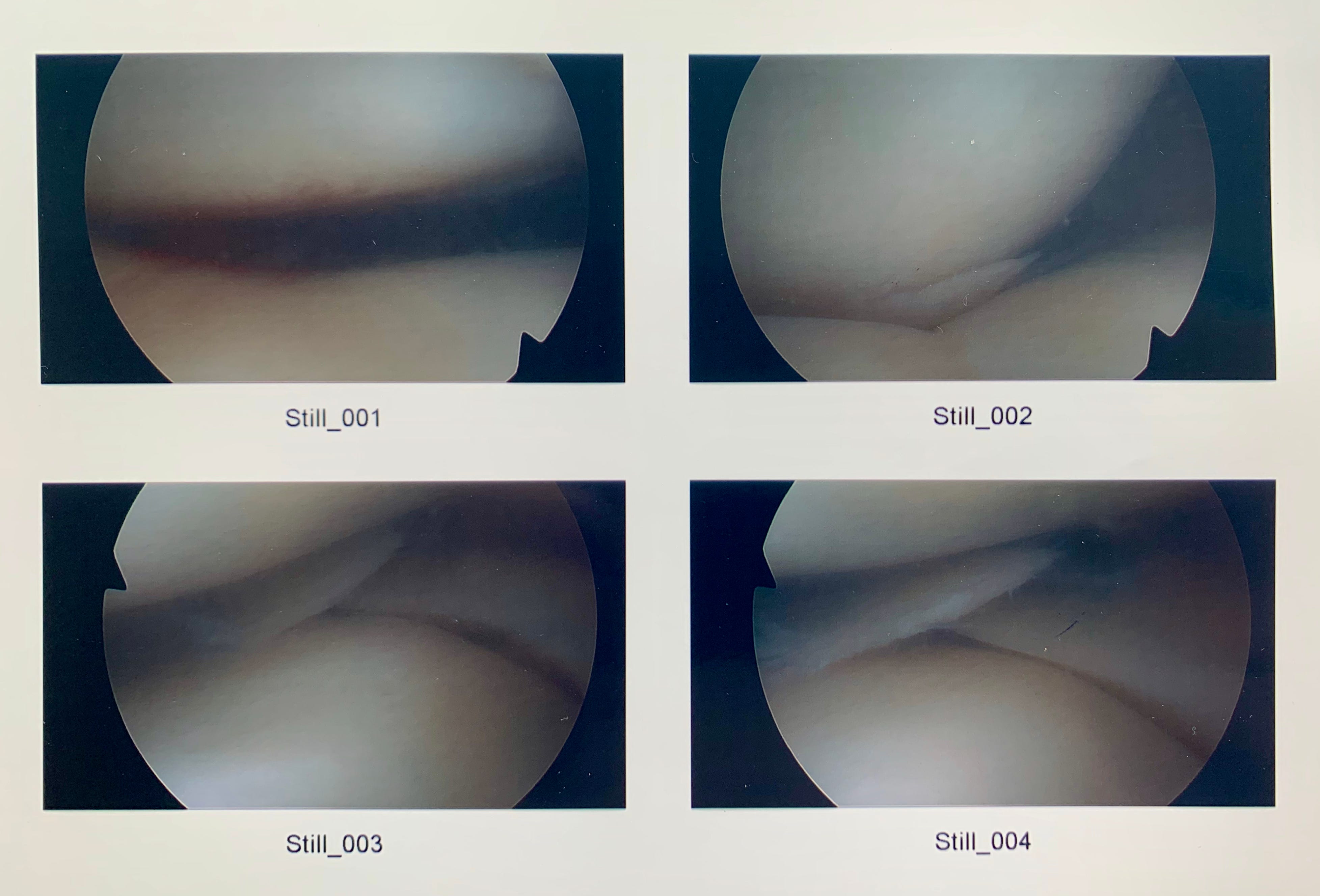 A guy I didn’t really know intentionally sprained my knee, cut it open and inserted a tiny camera and scalpel which he used to remove a torn section of meniscus. He had decided that this was necessary based on a detailed photo of my knee that was taken by a giant magnet a few months prior. He took some more photos of the inside of the knee while he was poking around in there (see below).